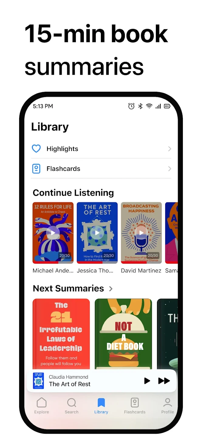 - Curated Daily Selections & Playlists: Wiser – 15 minutes Audio Books provides daily recommendations featuring the most popular or newest audio content. It also includes thematic playlists like ‘Morning Motivation’ or ‘Learning Spanish’. This intelligent curation significantly enhances usability by guiding users towards quality content they might discover otherwise, saving time and ensuring a good listening experience.