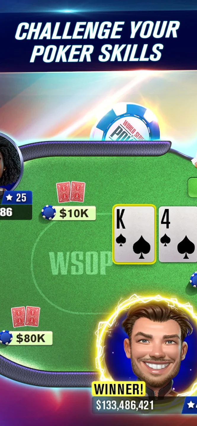 - [Modes or Levels]: Engage in Single-Player tournaments mirroring real WSOP events, Quick Games against AI opponents of varying difficulty, or Challenge Rooms. Each mode offers different stakes and objectives, providing substantial replay value through changing opponents.