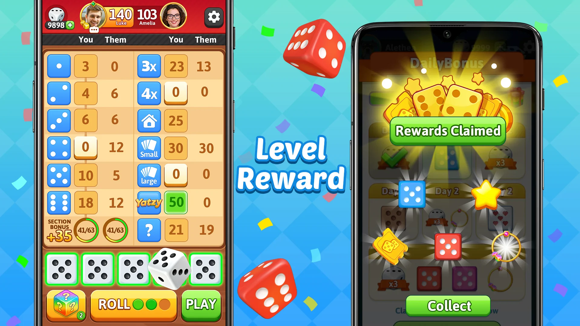 Shares the core Yatzy dice mechanics. Known for its classic scoring system and vibrant detailed visuals that enhance the nostalgic gameplay experience. |